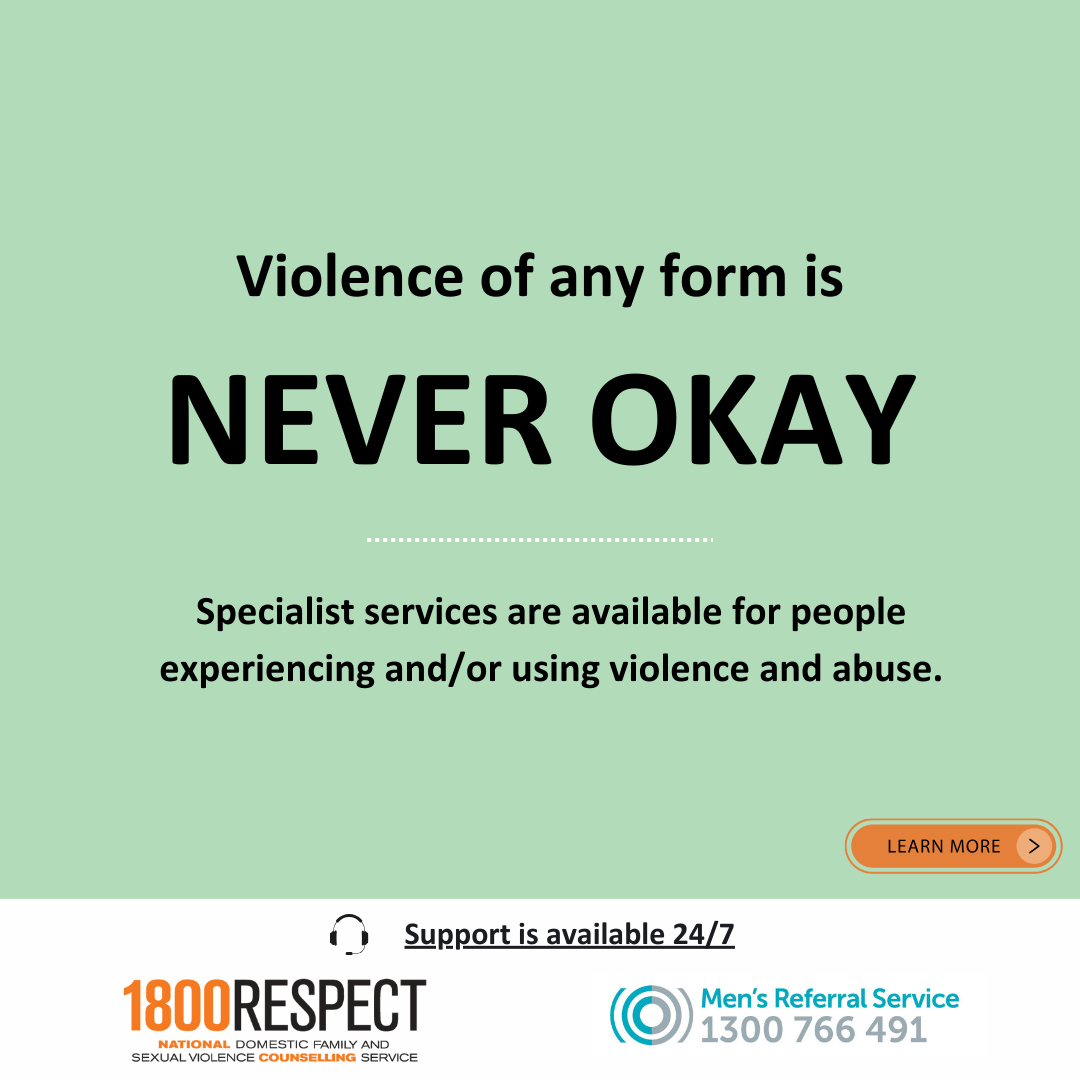 This campaign can be used by both organisations and individuals to raise awareness of the support available for men who use violent, abusive or controlling behaviours. You can share the social media tiles below. They have information about 1800RESPECT and Men’s Referral Service. You can click on the images to download them.