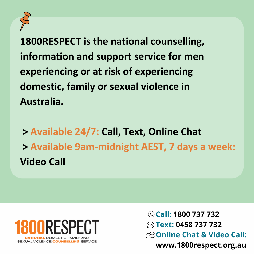- 1800RESPECT is Australia’s national domestic, family and sexual violence counselling, information and support service